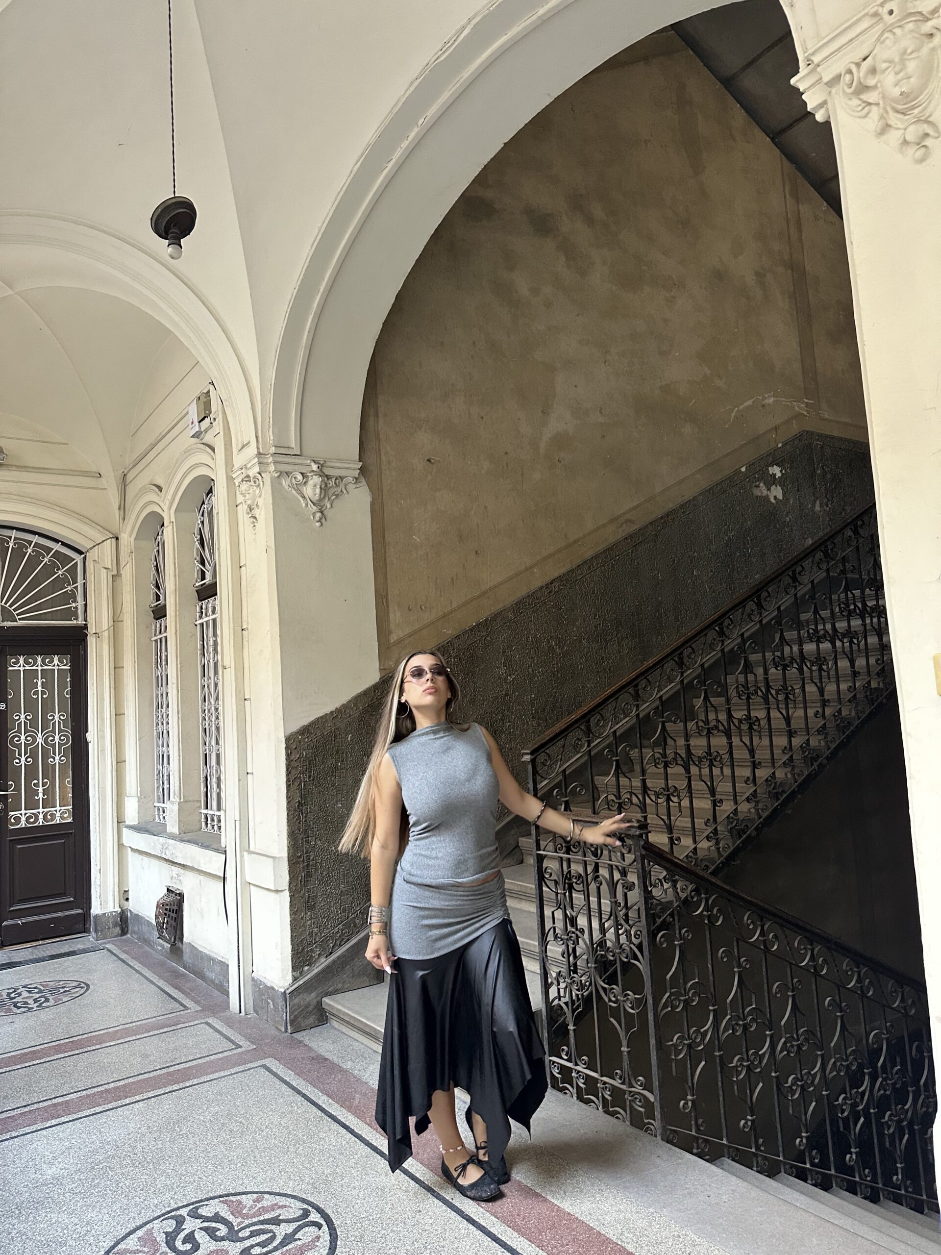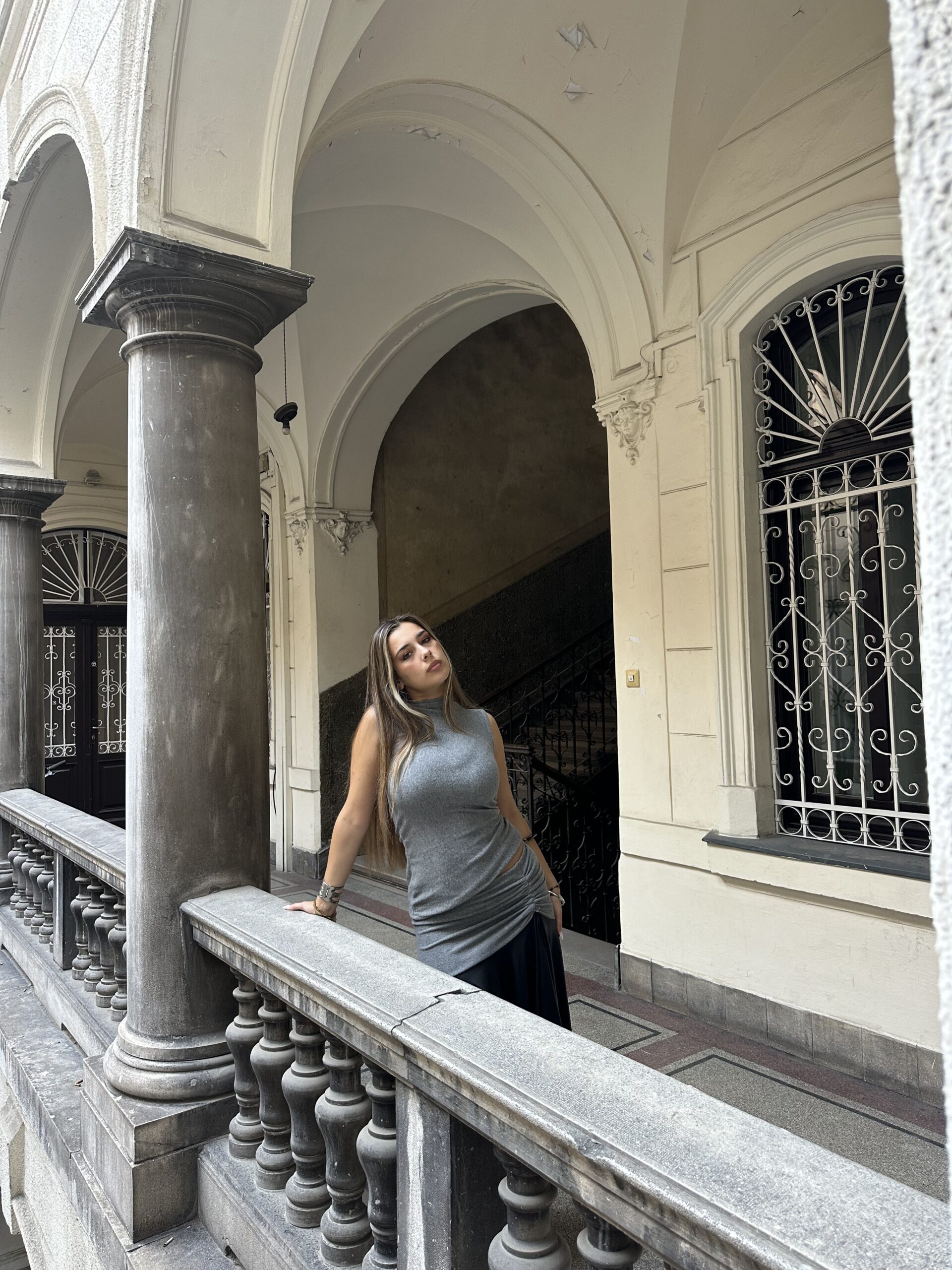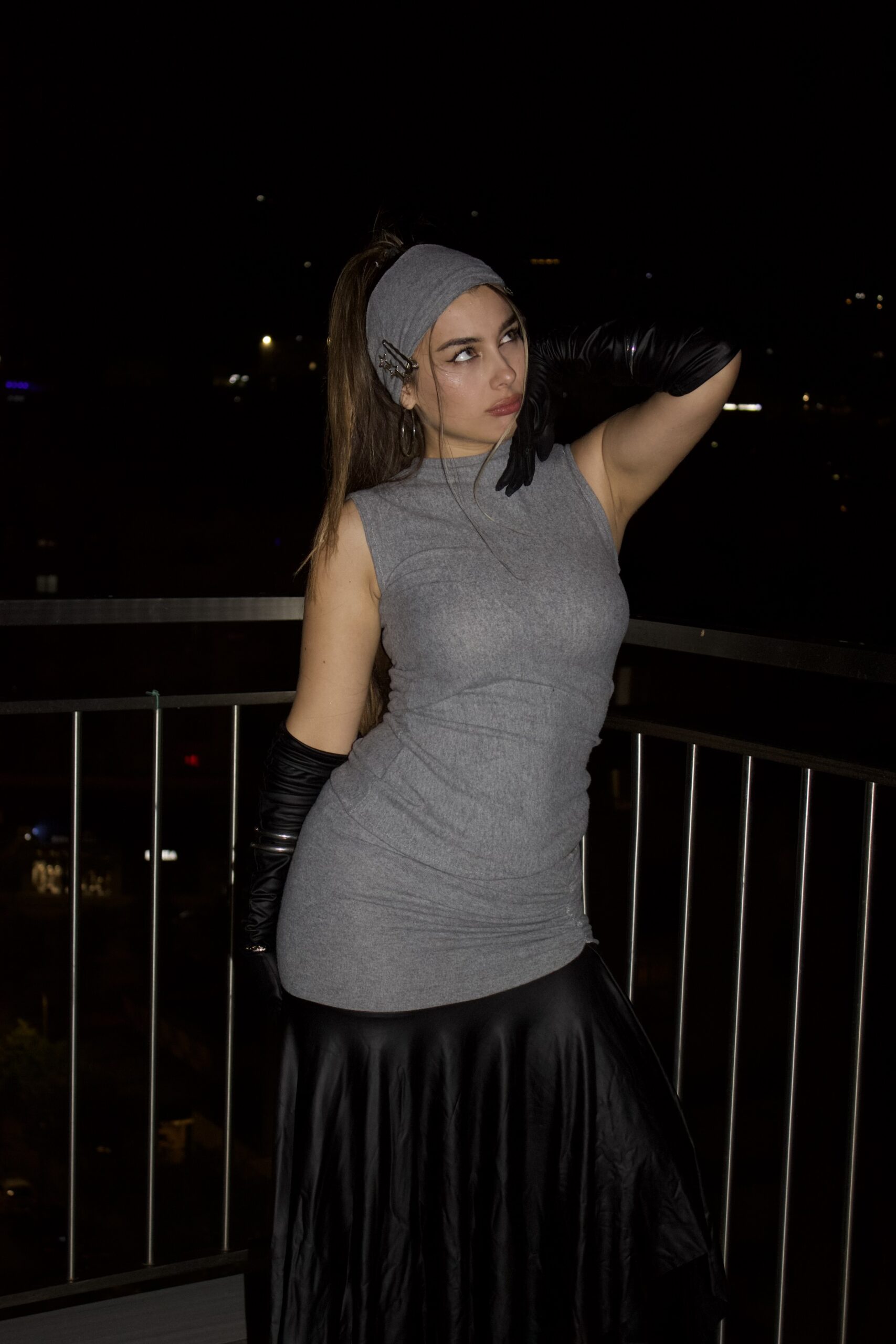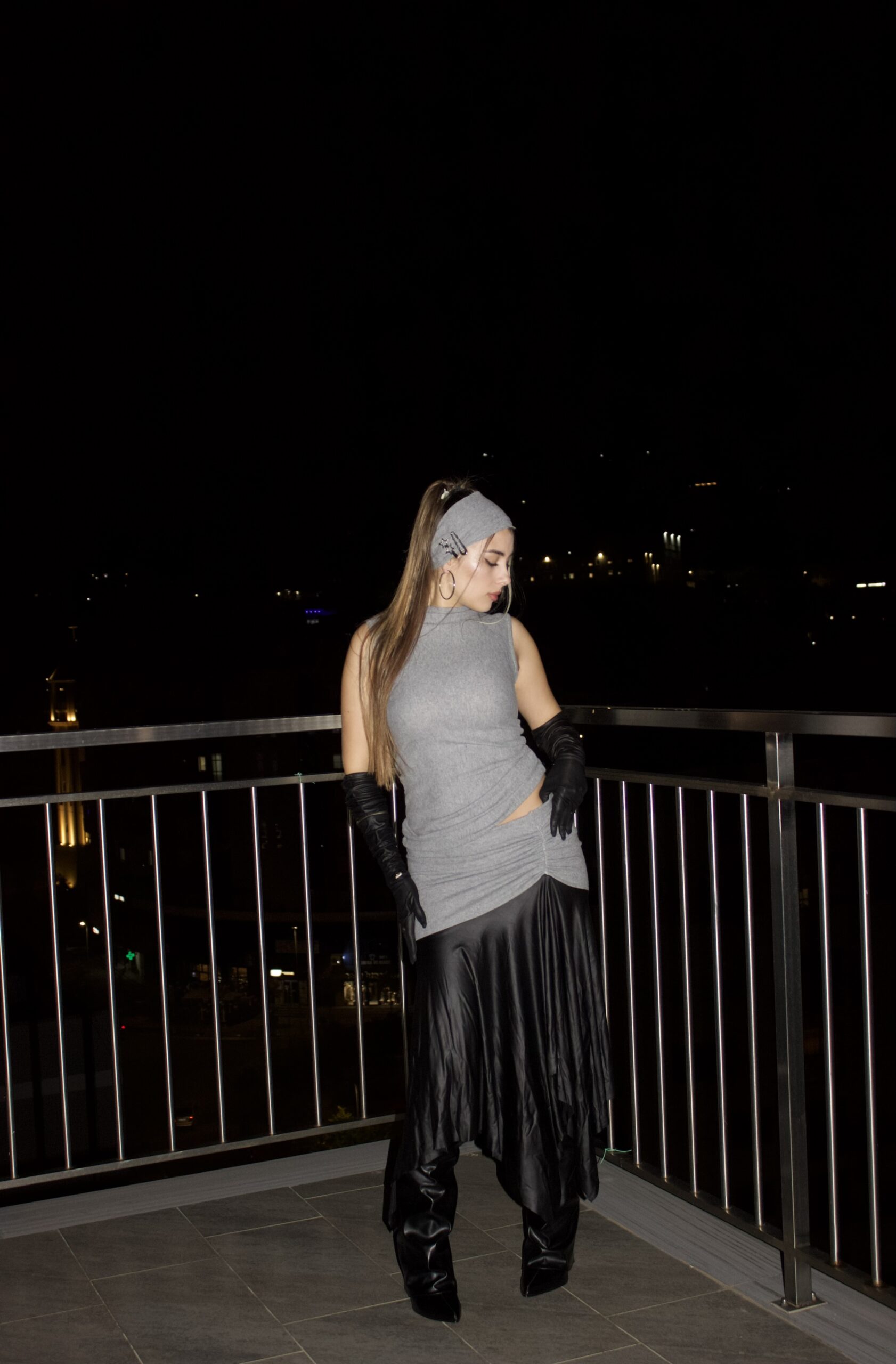 Grey cashmire set with leather fusion.