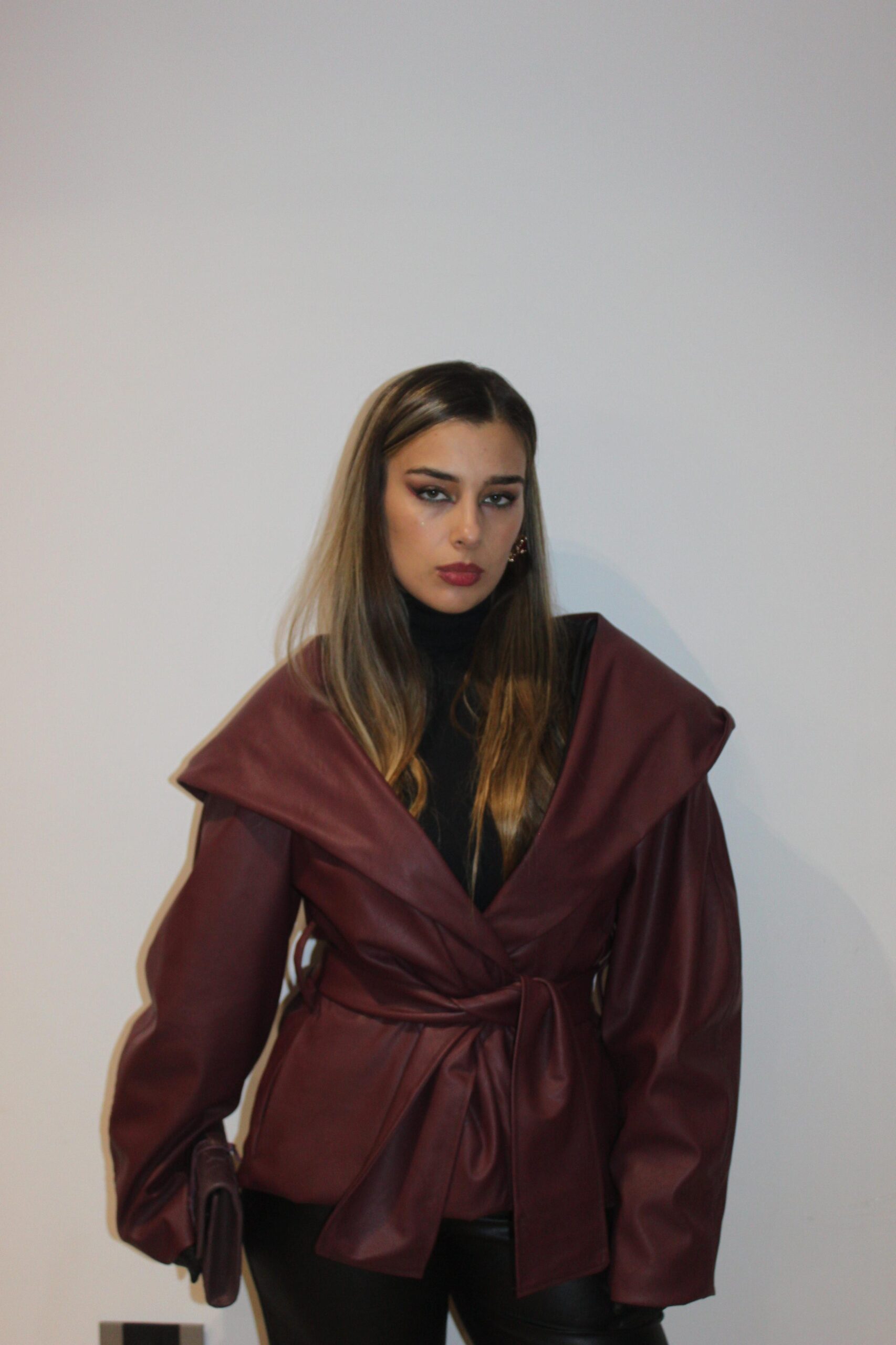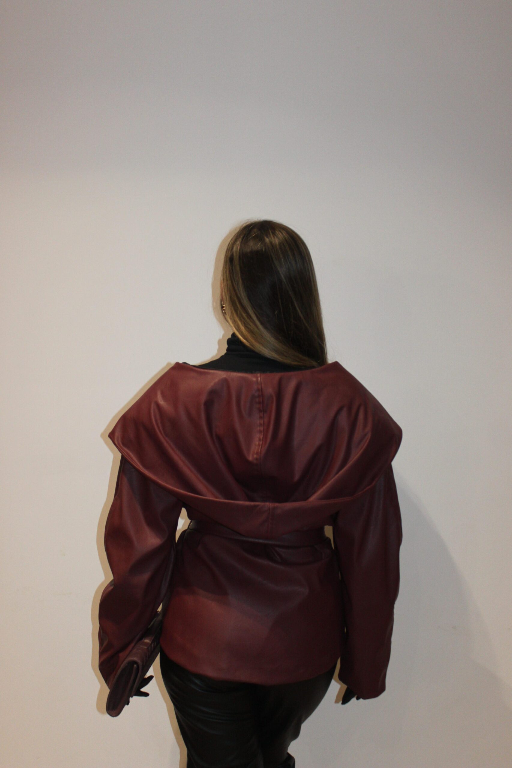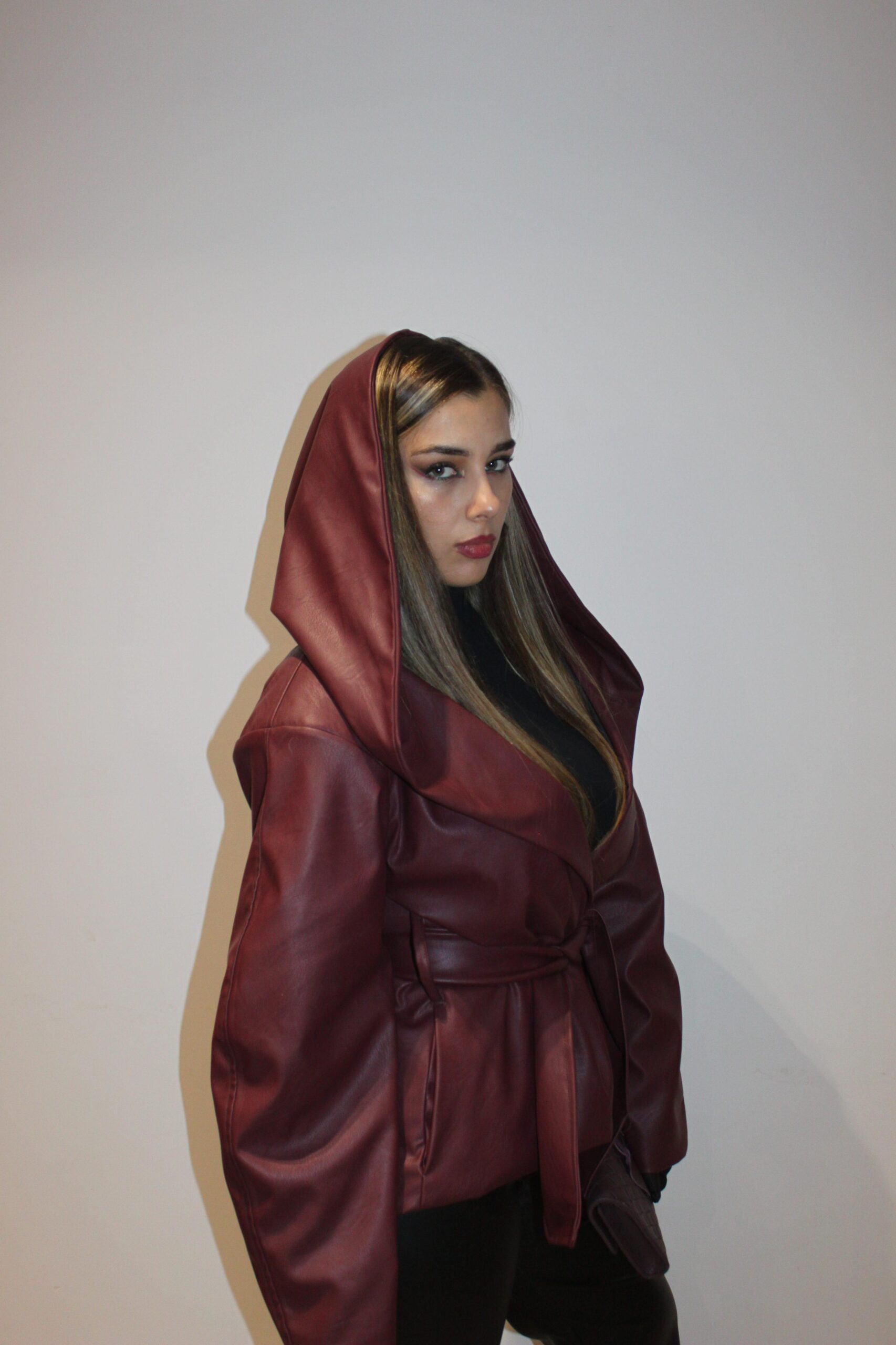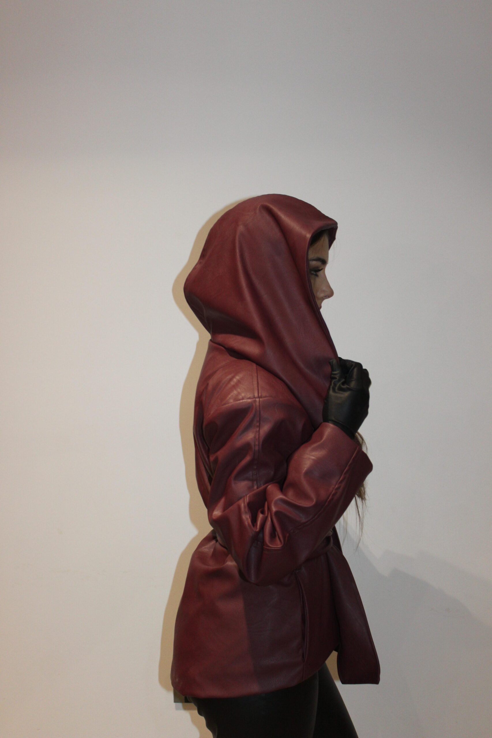 “Hunter II”Jacket belongs to our “Hunters Club”Collection a burgundy ,leather ,hodded,bold,and classy piece