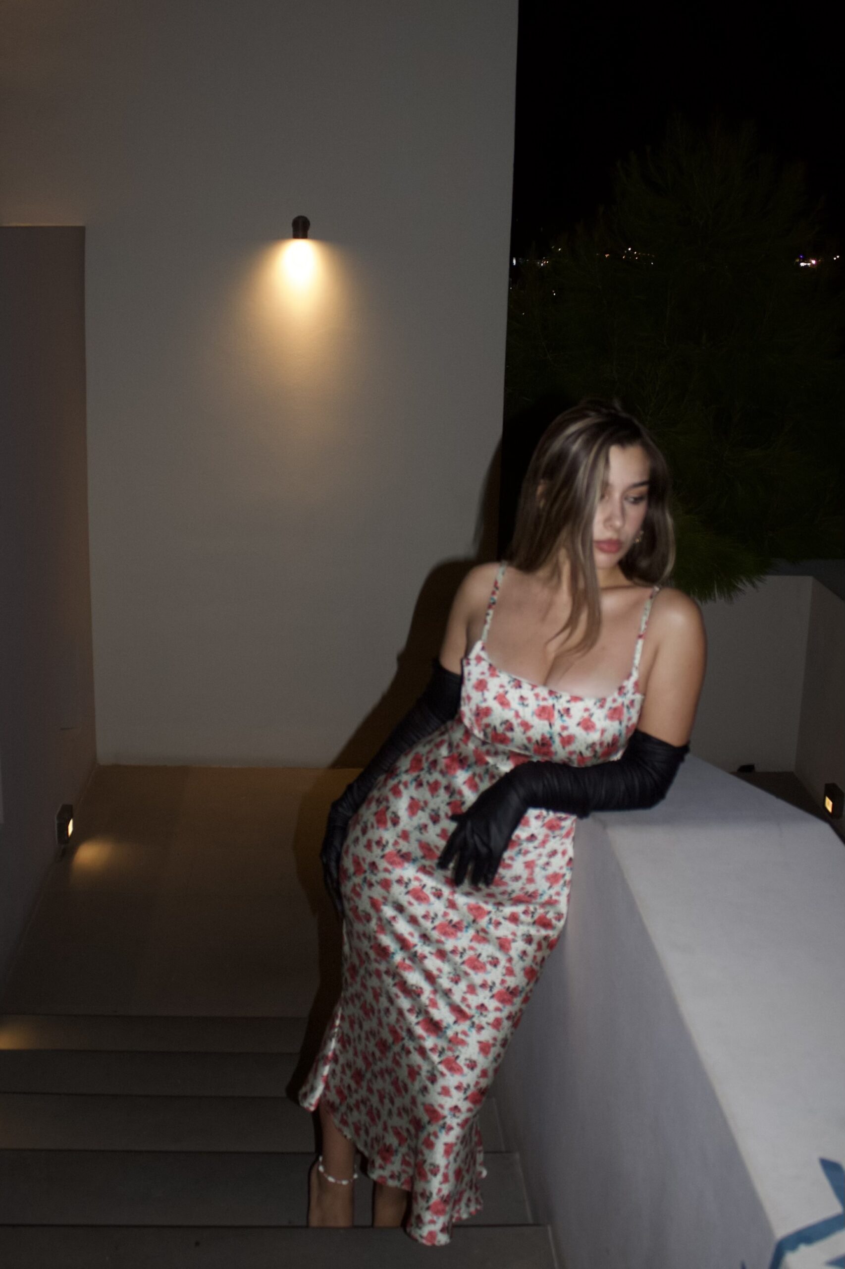 Silky,bias-cut,floral,laced back details