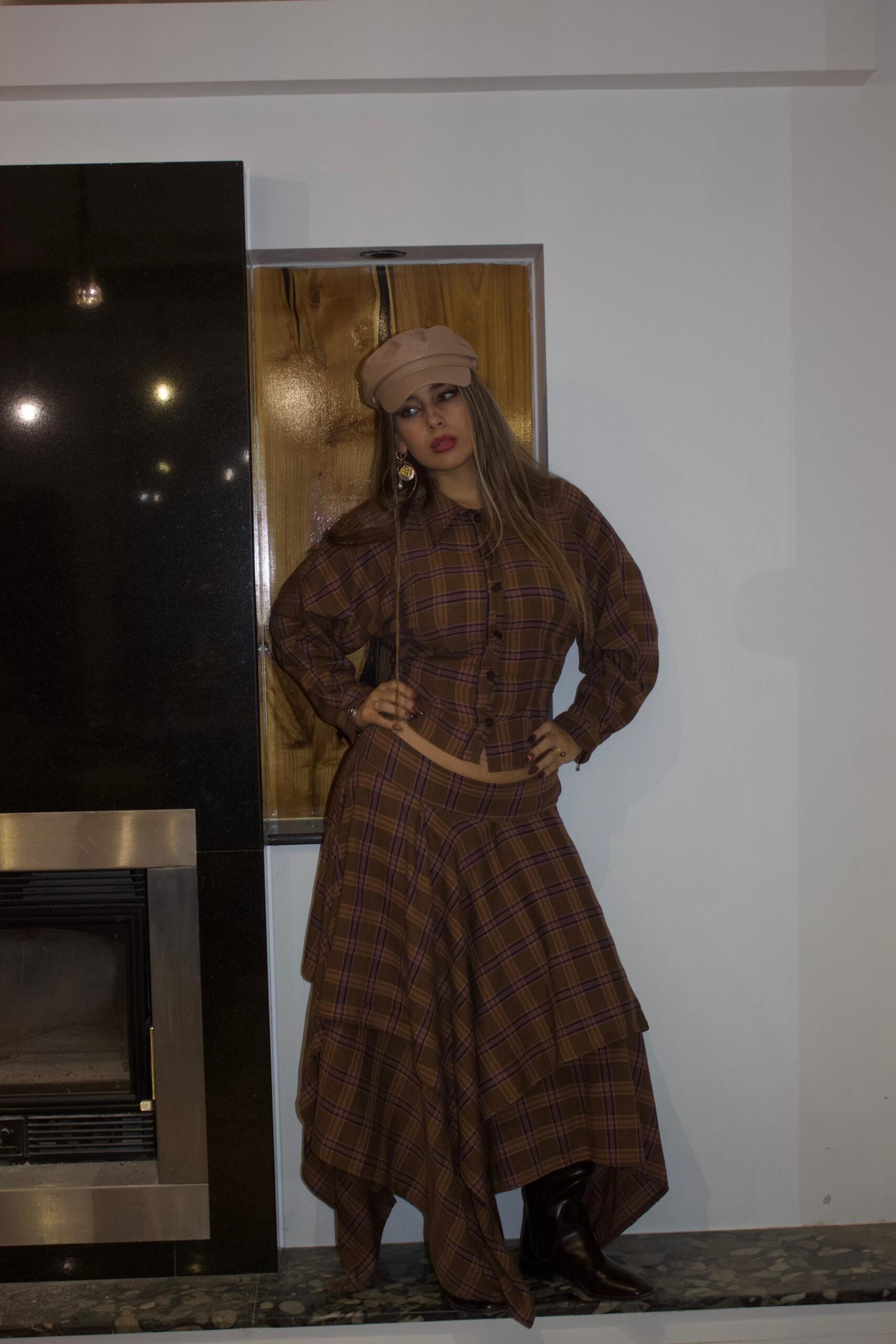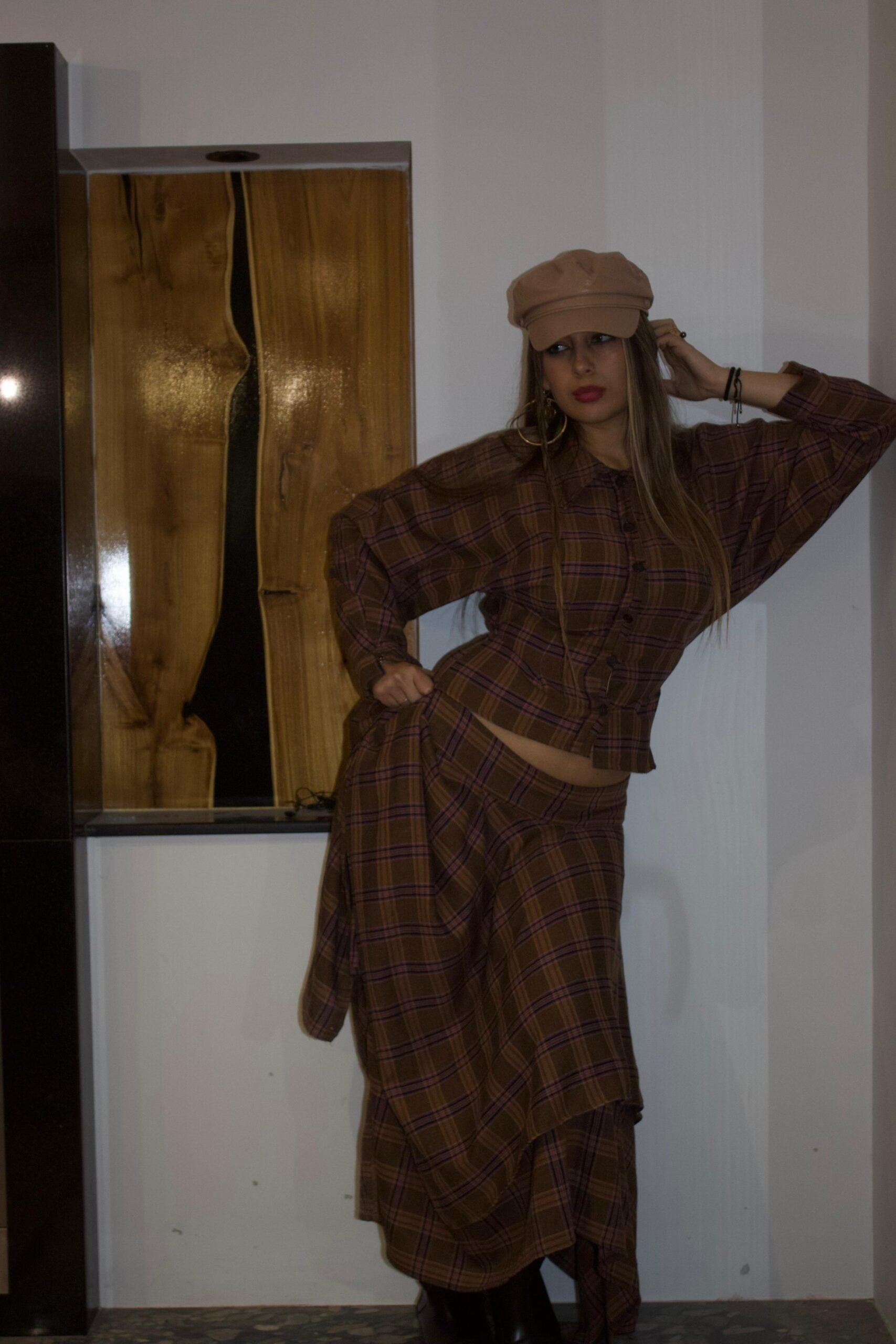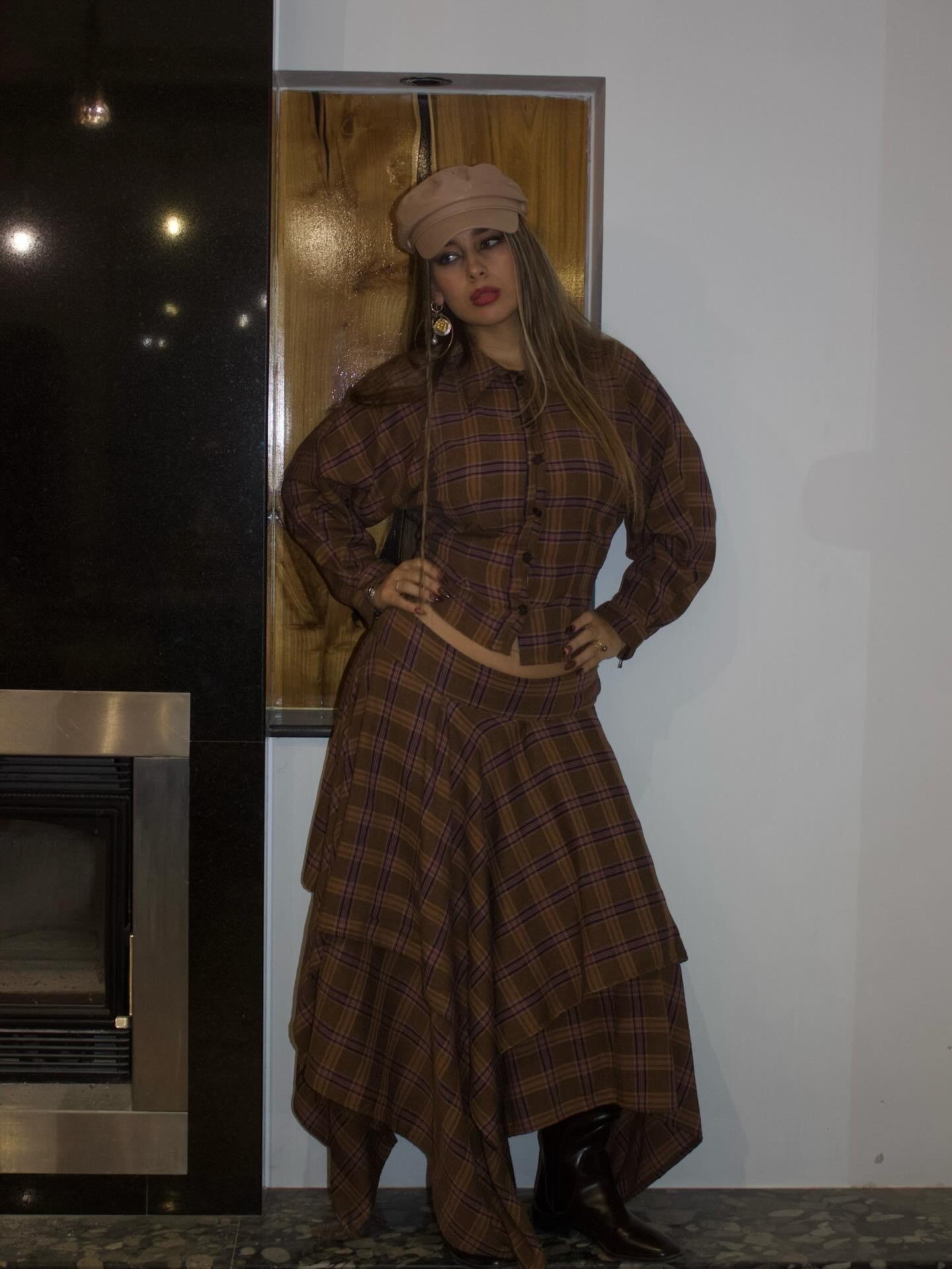 “Slayer”set belongs to our “Hunters Club”Collection. A plaid,warm-toned,structured,layred,voluminous ,timeless,set.